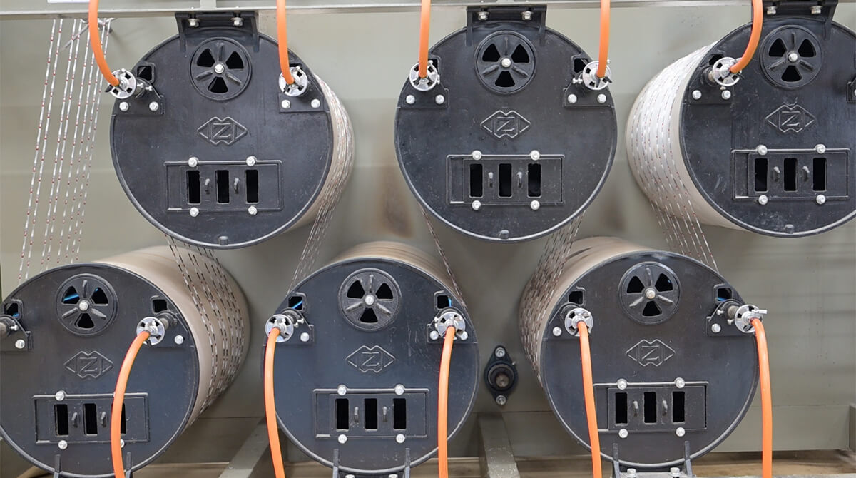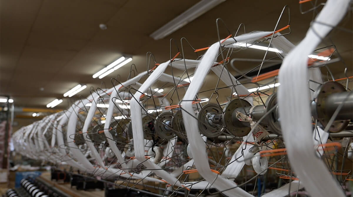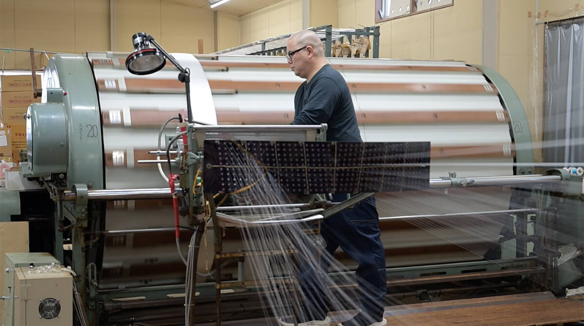 経糸を何千本も同時に揃える機械。織物の“骨組み”を作り、安定した品質を支えます。
