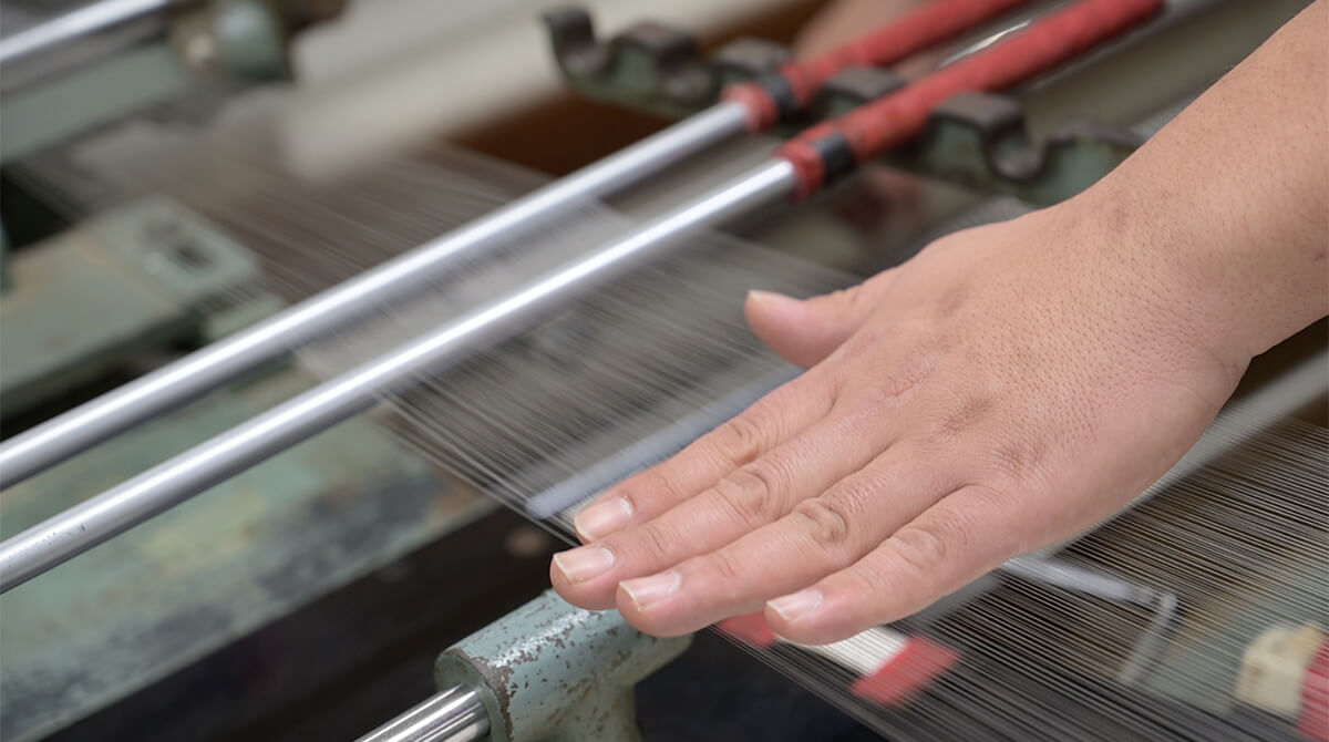数千本単位の経糸を揃え、織機にかけられる状態に加工します。経糸は織物の“骨組み”であり、精度の高い整経が品質を支える基盤になります。
